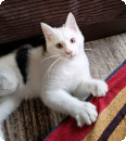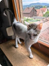 Beide wurden in einem Ort Nähe Dahn aufgegriffen. Die Mama war in erbärmlichen Zustand, hatte an Bauch und Beine fast kein Fell mehr und war ausgehungert. Klausi ist leicht behindert, sein rechtes Hinterbein ist verkrüppelt, trotzdem bewegt er sich wie jede andere Katze ohne Probleme. Beide sind total verschmust und anhänglich. Sie sind FIV und Leukose negativ getestet und bei Abgabe kastriert und gechipt. Da beide sehr aneinander hängen, suchen wir ein geeignetes Zuhause als Wohnungskatzen.